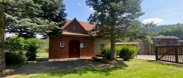 alten Wehrturm des Amtes wurde auch der Friedhof hier her verlegt. Der Königliche Erlass im Jahre 1794 führte zur Neuanlage des Friedhofes an seiner heutigen Stelle im Norden des Dorfes, direkt gegenüber vom Königstein. Die erste kleine Kapelle steht noch heute links des Tores an der Mauer. Die letzte Beisetzung auf dem alten Friedhof erfolgte im Jahre 1826. Danach mussten alle Beisetzungen auf dem neuen Friedhof erfolgen.