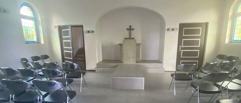 Im Jahre 1945 wurde eine neue, größere Kapelle am westlichen Ende des alten Hauptweges errichtet, die auch Sitzplätze für die Trauergäste hatte.