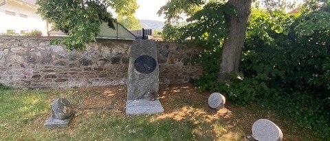 und den Gedenkstein für die Opfer und Gefallenen aus der Zeit des zweiten Weltkrieges und für die verstorbenen Mitglieder der Freiwilligen Feuerwehr.